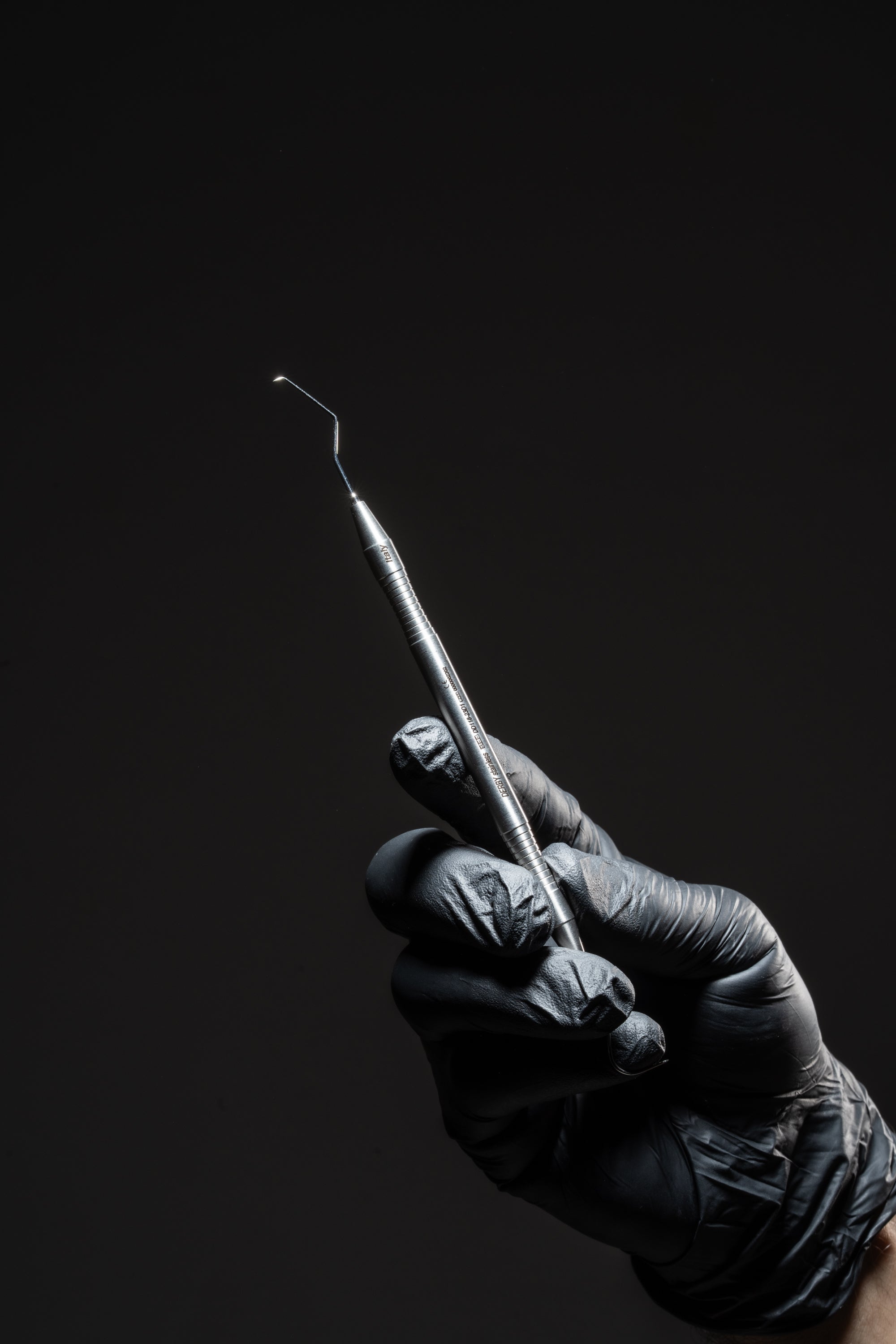 The opposite end features a sharp explorer to detect caries, calculus, and marginal discrepancies of restorations.